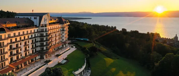 With a spectacular setting above Lake Geneva at the foot of the Alps, Hotel Ermitage, part of the famous Évian Resort, is a welcoming sanctuary for both wellbeing and adventure. It’s home to an award‑winning spa and an impressive list of activities – from tennis and padel to skiing and wa