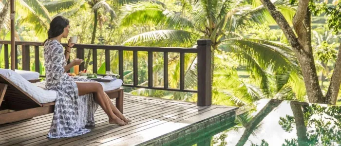 COMO Shambhala Estate’s rooms and suites are spread across the resort in free-standing residences. Each is uniquely styled, but all share the same pared-back, luxe feel – think dark woods and flowy white fabrics. Guests have a personal assistant at their service.
