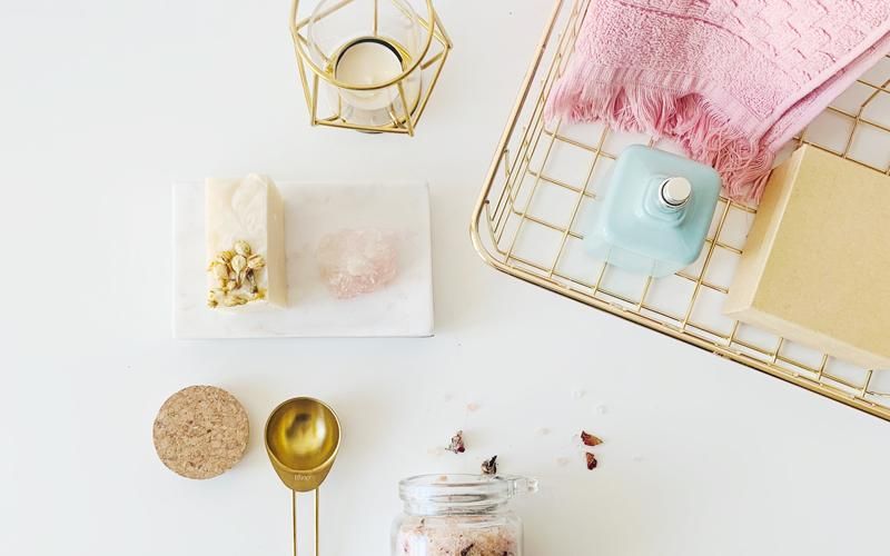 End your home spa ritual with a self-massage to boost circulation, moisturise your skin and promote self-love. To make your own massage oil use 30ml of carrier oil such as sweet almond oil or grapeseed oil and add 10 drops of essential oils, selecting oils which will complement your goals: