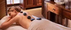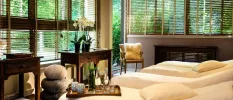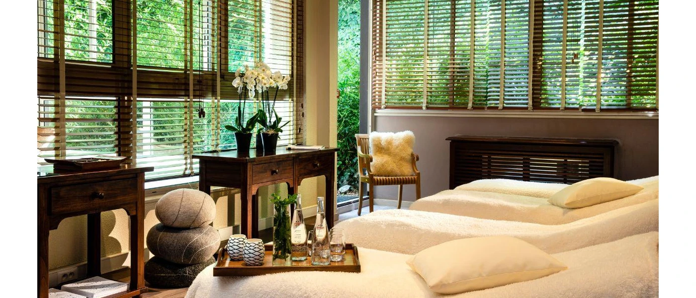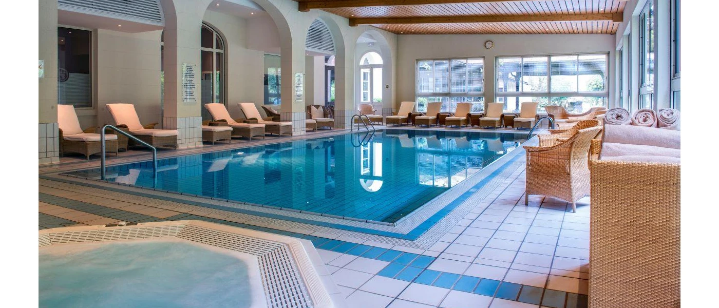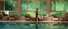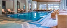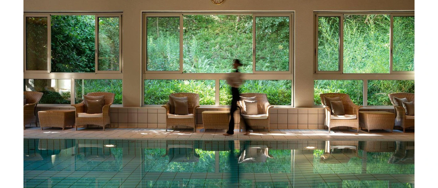 Facilities include nine treatment rooms, two heated pools (indoor and outdoor), a hot tub, sauna, steam room and a relaxation lounge with herbal teas.
