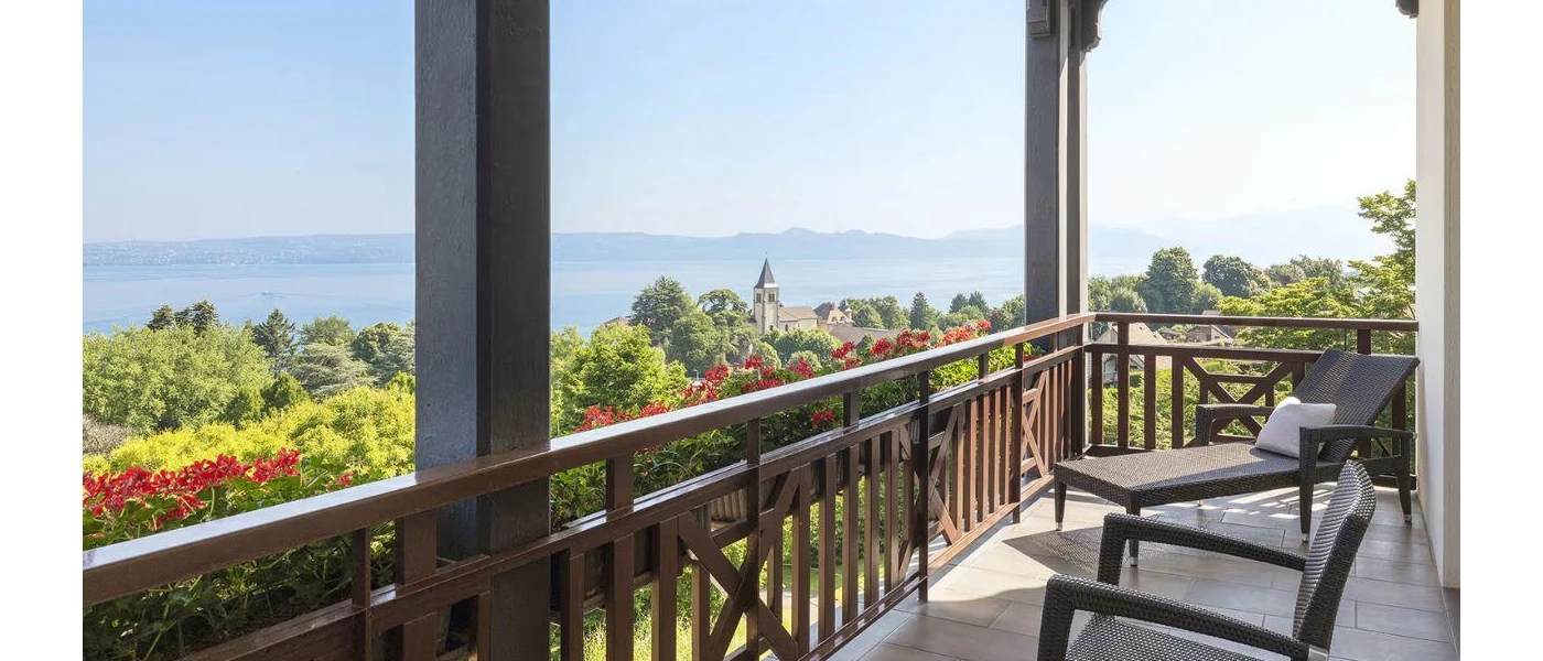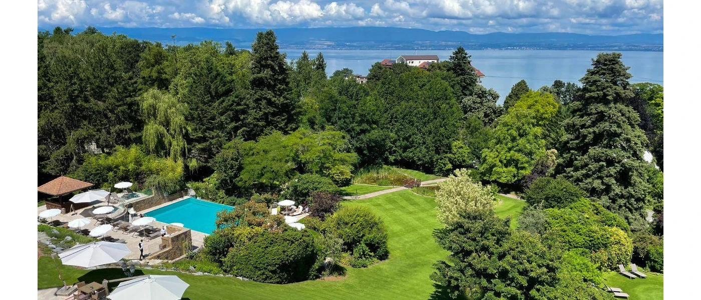 Set within 19 acres of beautifully restored parkland, Hotel Ermitage overlooks Lake Geneva and sits at the foot of the Alps in the picturesque town of Évian-les-Bains. Just a short walk away, you’ll find a charming lakeside promenade, cobbled streets, a bustling marina, and a lively summer market.