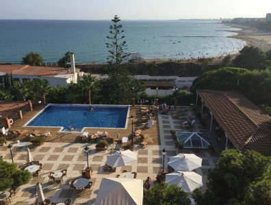 Healthy Mediterranean cuisine is served in the hotel’s bright and airy restaurant, where wraparound windows make the most of the surrounding garden and ocean views. Rooms follow a similar style, with floor-to-ceiling balcony doors and soothing neutral décor.