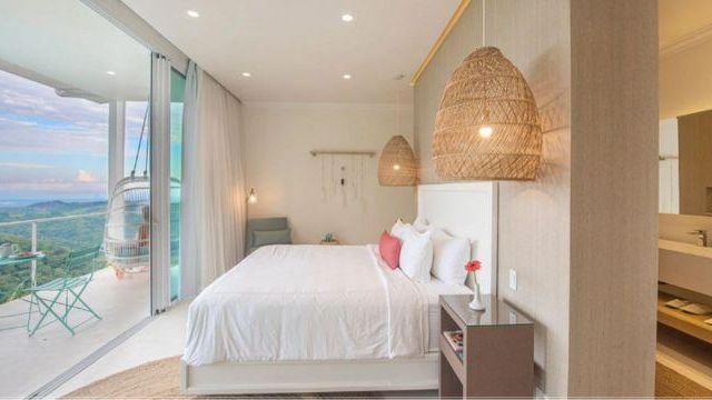 Known as the Casitas, these three spacious rooms, Maca, Mucuna, and Moringa, have a fresh ocean breeze flowing through and a view of the valley and the Pacific Ocean. Guests have a private balcony with a hanging chair to relax in. These rooms feature two queen beds and a luxury twin, making them perfect for friends traveling together.