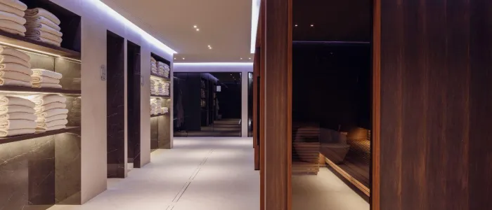 Wellness facilities include a gleaming white spa with hydro-mud therapy, saunas, hammams, indoor and heated outdoor pools, fitness studios, relaxation lounges, and immersive sensory experiences. In between therapies, guests can explore Merano’s elegant cafés and nearby vineyards, thermal baths and alpine trails.
