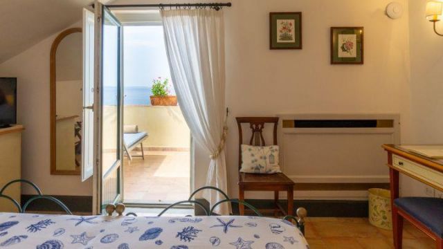 Each suite features a private terrace, French balcony, or secluded patio, along with marble bathtubs and bathrooms adorned with traditional Vietrese Majolica, celebrating the vibrant ceramic artistry of the Amalfi Coast.