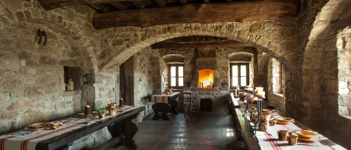 Nothing about this retreat is ordinary, including its rooms. There are 18 in total, once used by hermits. Simple and comfortable, they’re housed in a stone building that keeps guests warm in the winter and cool in the summer.