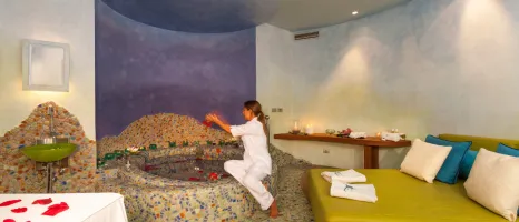 • Complimentary daily access to the extensive Lefay SPA World ('Water and Fire'), featuring indoor/outdoor salt-water heated pools, 25m outdoor swimming pool, Jacuzzi, 5 saunas including a ladies-only sauna, relaxation grotto, Kneipp path and gym