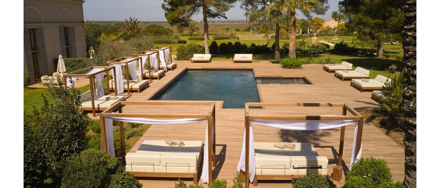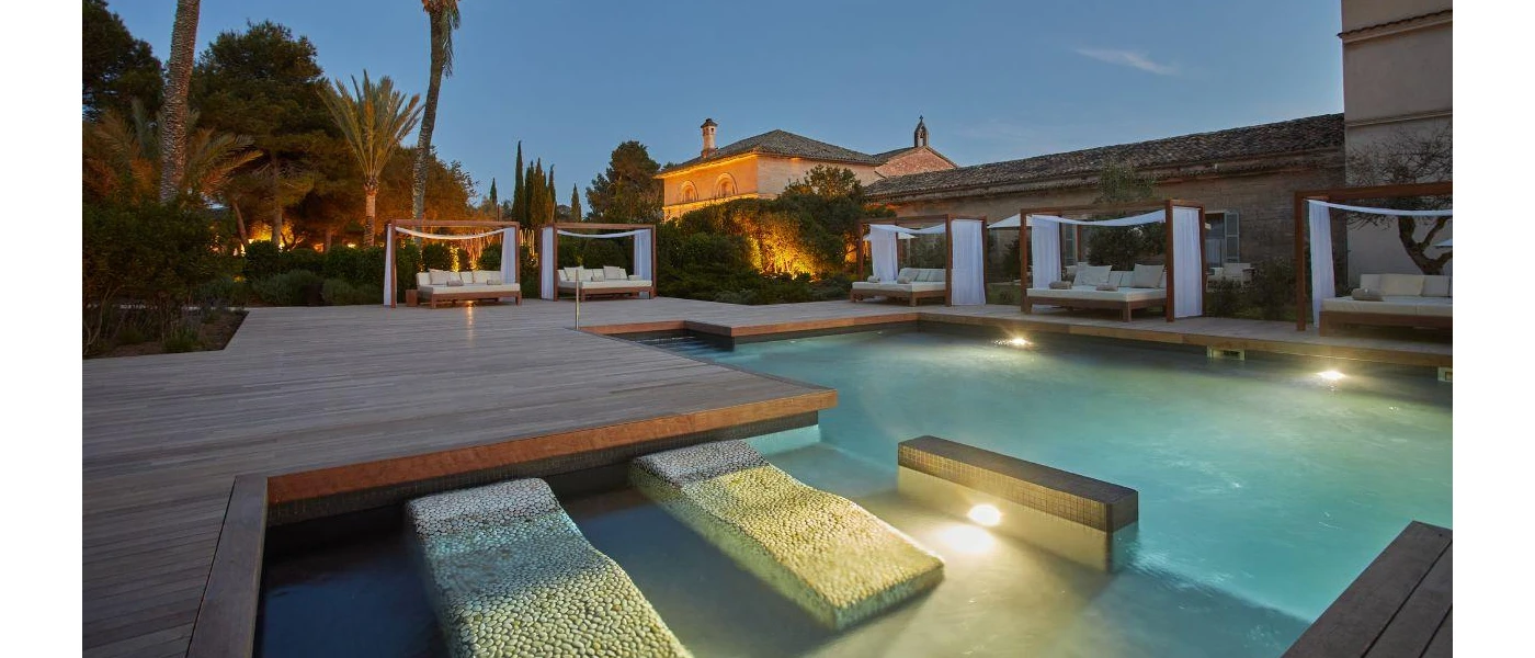 Fontsanta Thermal Spa & Wellness Hotel is a hidden gem, nestled in the tranquil Mallorcan countryside, yet conveniently close to Es Trenc beach. This 5-star boutique adults-only retreat, is dedicated to promoting wellbeing with the therapeutic benefits of its thermal waters, and is the only natural hot springs in the Balearic Islands. These mineral-rich waters stimulate positive effects on the body, fostering a sense of health and wellbeing. Guests can also participate in morning yoga sessions, savour delicious cuisine, swim in the outdoor pool, or unwind in the serene gardens. Disconnect and embrace the tranquillity of this exceptional retreat.