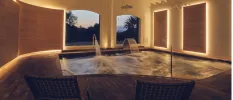 The wellness facilities at Fontsanta include the 'Bathing Area,' which features a thermal water pool with various underwater jets, a Finnish sauna, and a steam bath. In the 'Tonification Area,' guests can enjoy an ice fountain, a bucket shower, and a sensation shower. There is also a quiet room for ultimate relaxation and an exclusive area with water beds. In the thermal bath area, you’ll find fresh seasonal fruit, dried fruit, and infused water to hydrate your body and replenish minerals.