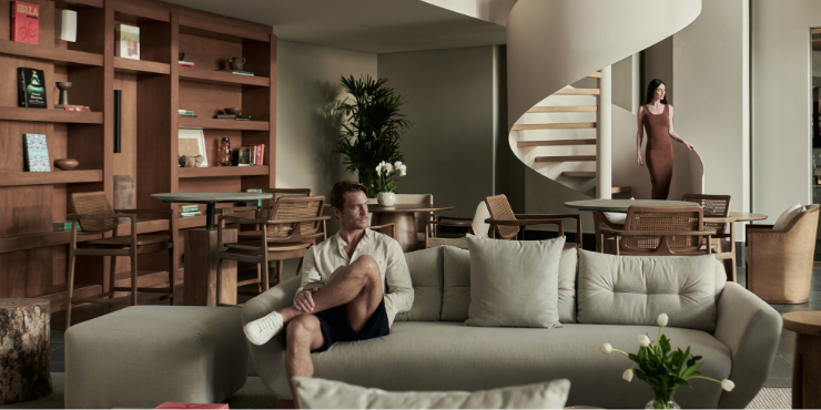 The wellness clinic spans an impressive 100,000 square feet, with a beachfront infinity pool, a full hydrotherapy circuit with sauna, Turkish bath and hammam, plus a state-of-the-art gym, outdoor fitness zone, jogging track, movement lab, yoga and meditation rooms, and sports courts for tennis and padel.