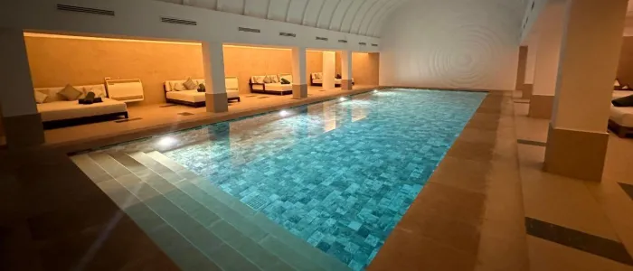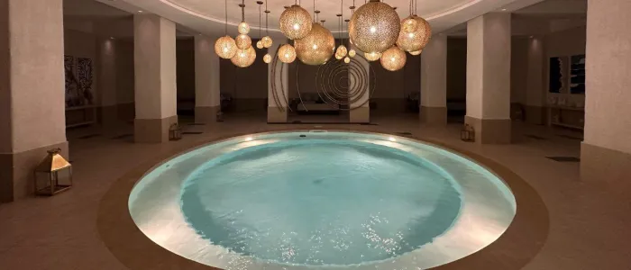 Along with a hammam and massage treatment rooms, the spa has a relaxation area, an indoor heated pool, a fitness centre, a hair salon and a manicure and pedicure zone.